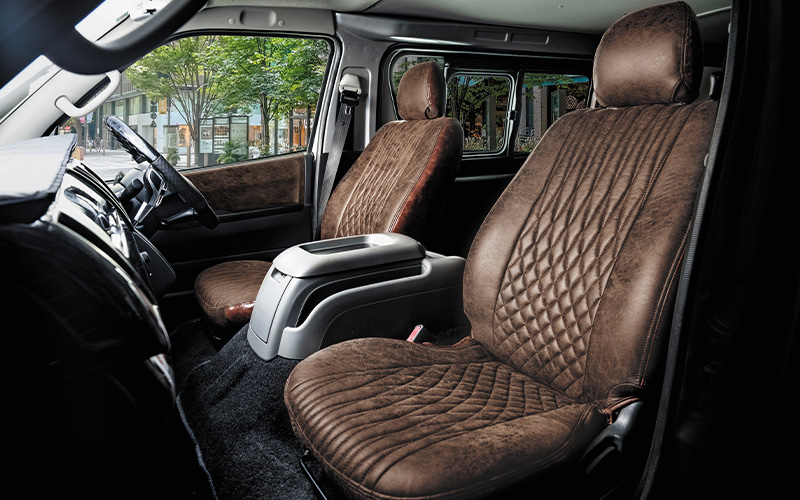 シリーズ最高峰に位置するハイエンドモデル。本革生地の量、デザイン性など高級シートカバーに求められる要素を高次元で実現。乗る人すべてが高い満足感を感じていただけます。