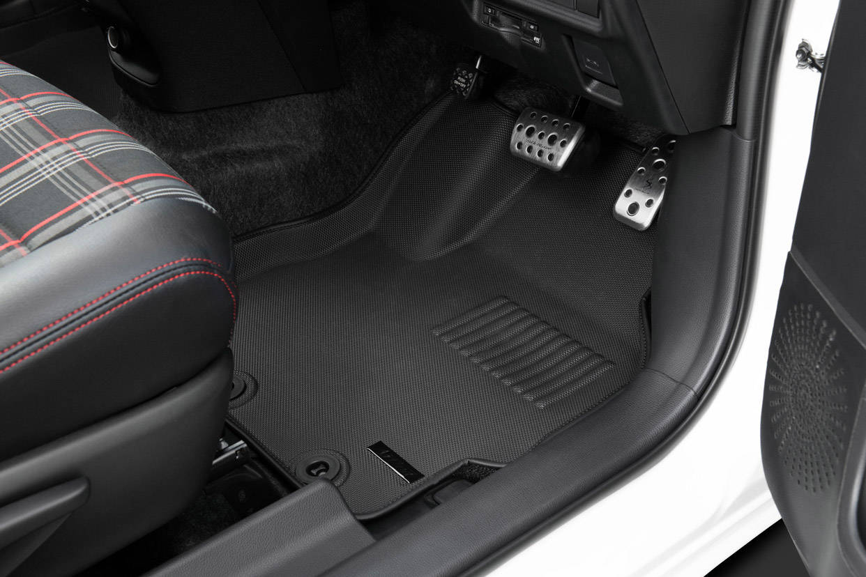 車内を清潔に。耐水性に優れた、水洗い可能なフロアマット。
