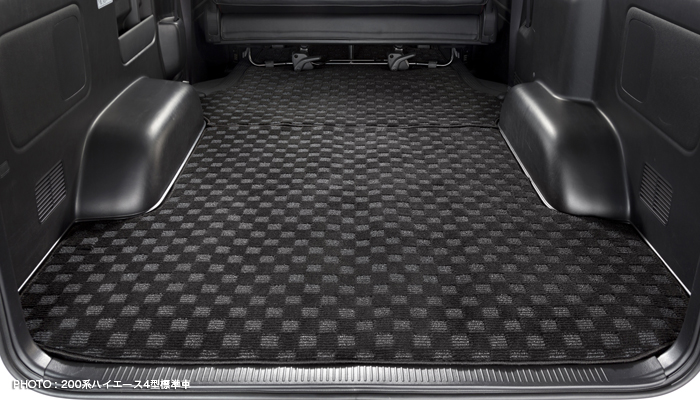 ハイエースのラゲッジスペースをすべてカバーできるマット、それがロングラゲッジマット。2分割構造にすることで広大なスペースをカバーします。