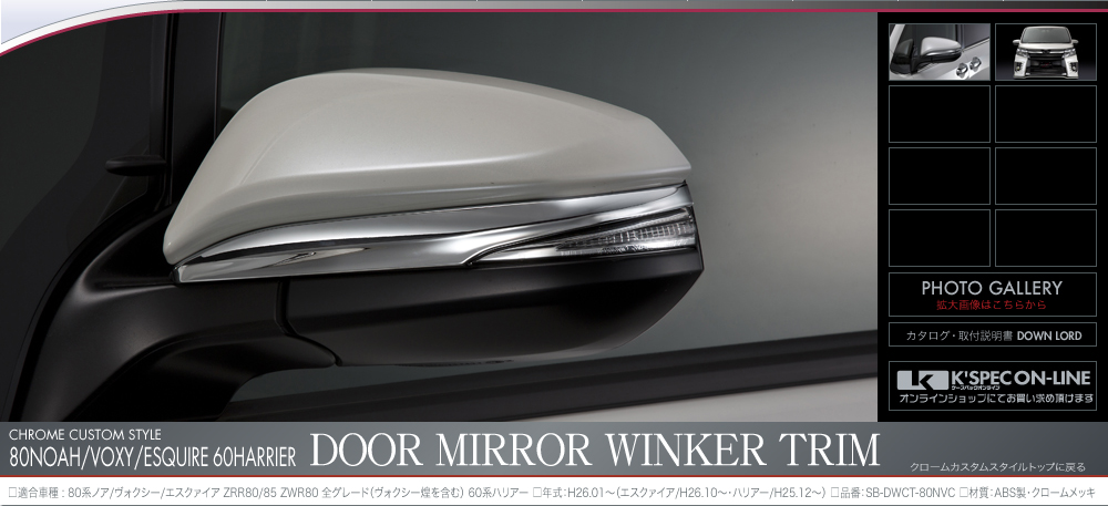 | ■80ノア/ヴォクシー/エスクァイア ドアミラーウィンカークロームトリム | ¥6,900+税 | |